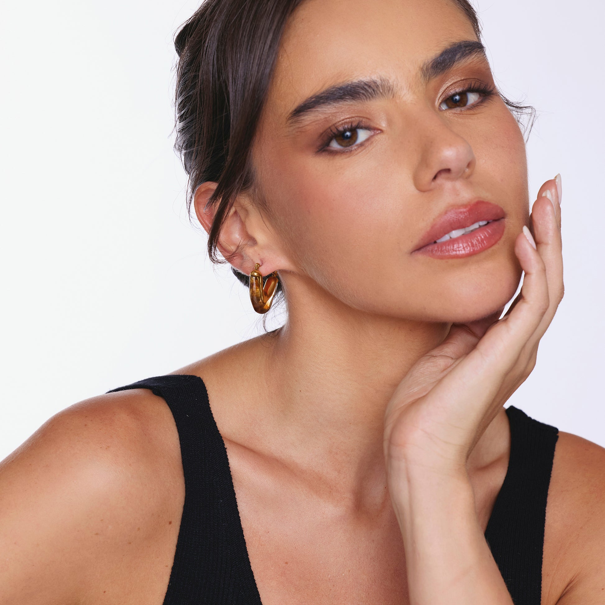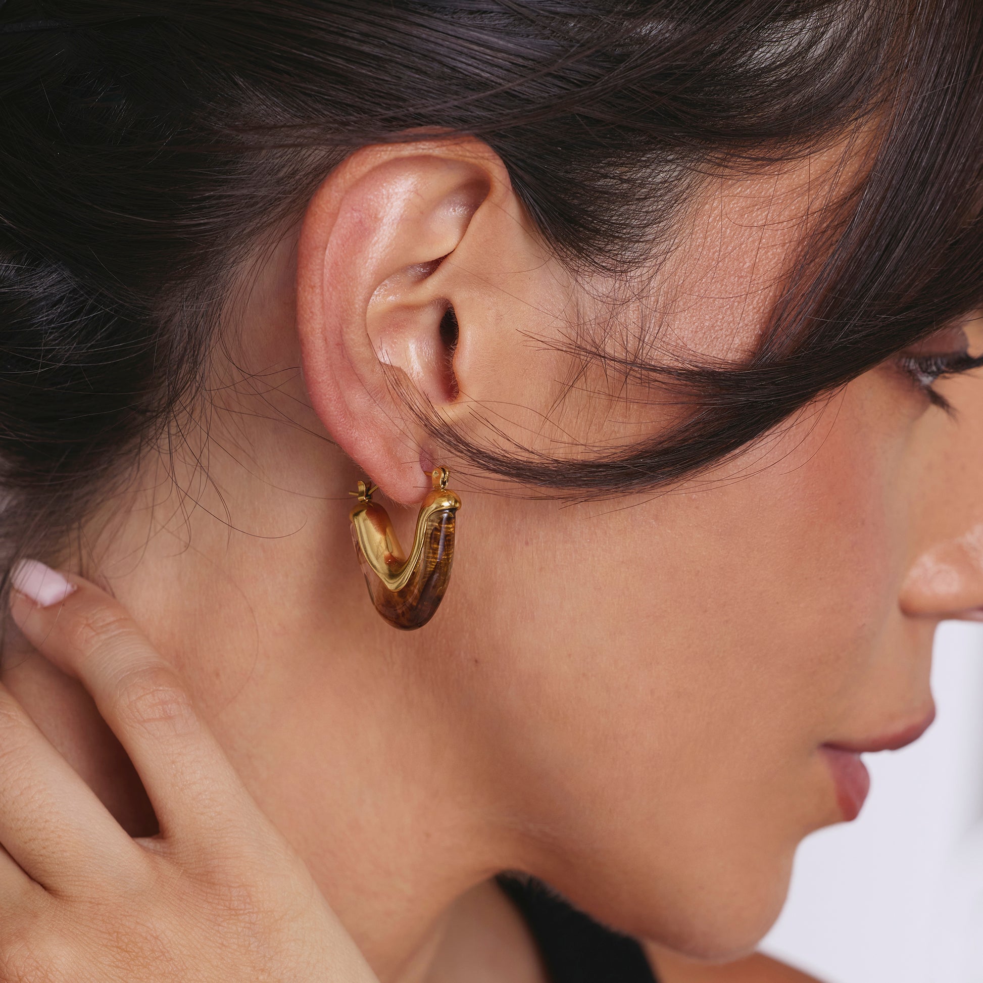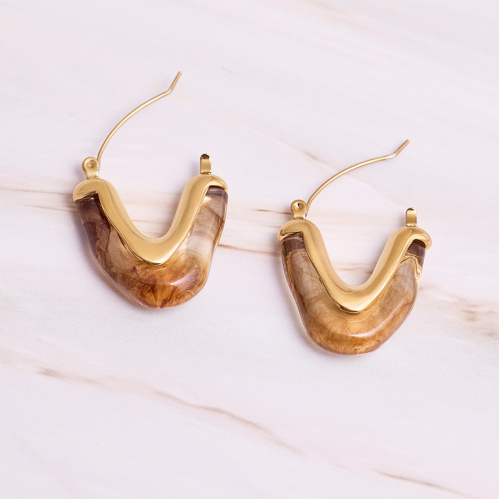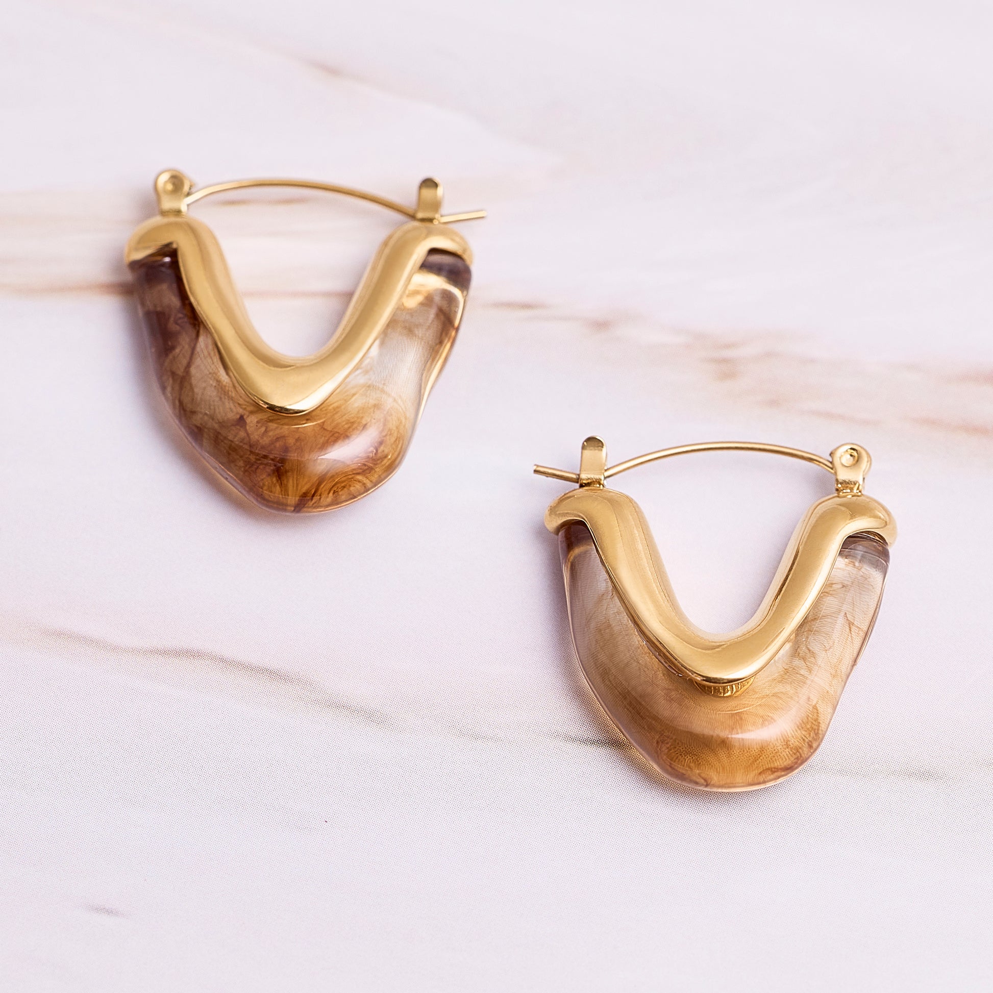 Aros triangulares dorados con detalle en vidrio pintado.