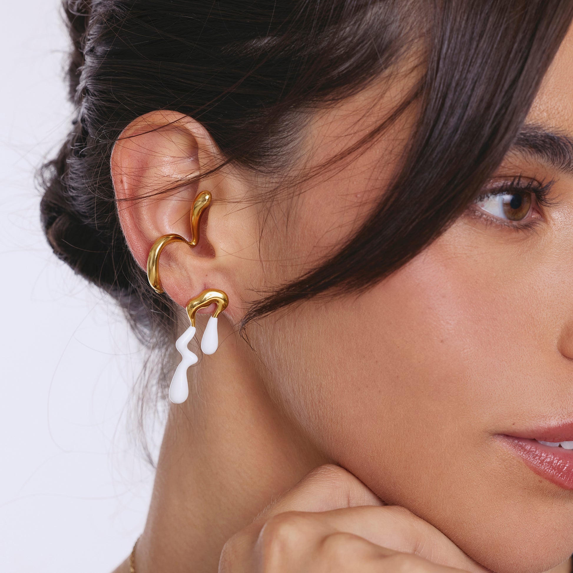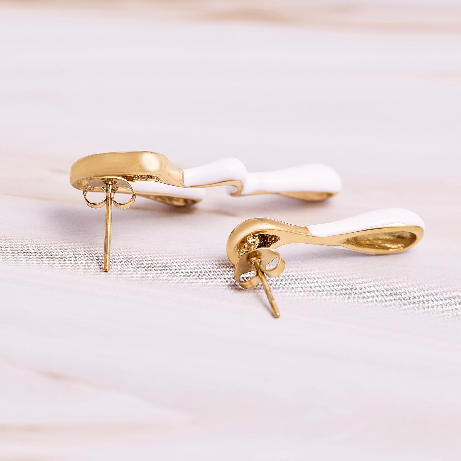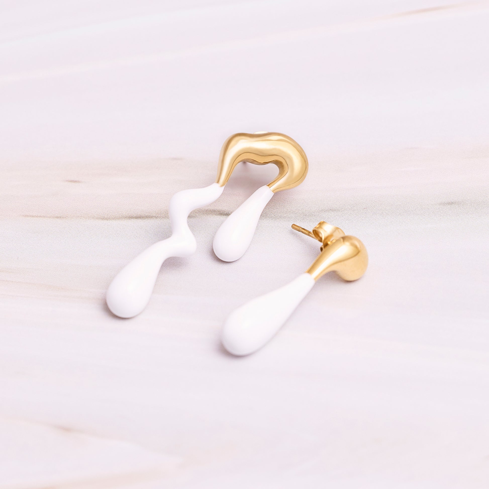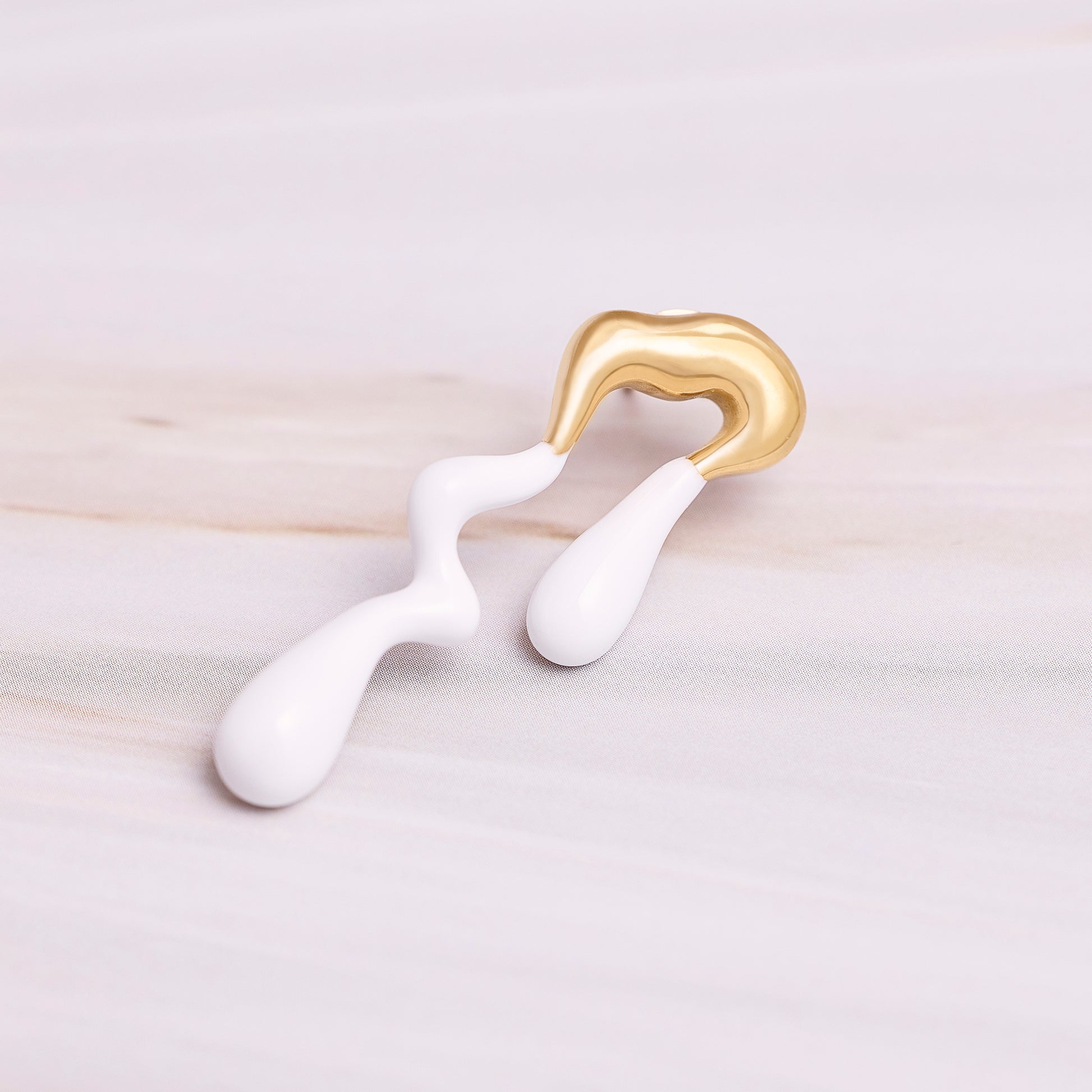 Aros dispares forma derretida, tono dorado bañado en acrilico de colores.